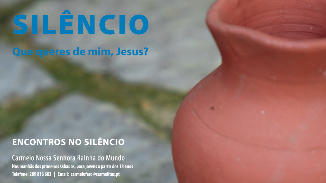 As Irmãs Carmelitas Descalças do Carmelo de Nossa Senhora Rainha do Mundo, no Patacão (Faro), dinamizam os “Encontros no Silêncio” nas primeiras sextas-feiras de cada mês, a partir de 5 de outubro, às 21h. Os “Encontros no Silêncio” nasceram como proposta de discernimento vocacional – vida religiosa, sacerdotal ou no matrimónio – para jovens. Tem sido um espaço orante de escuta da Palavra de Jesus para ajudar discernir a vocação a que Ele chama cada jovem, isto é, ser todo, em tudo e sempre em missão, sob a guia da experiência dos mestres contemplativos do Carmelo e do testemunho vocacional de consagrados e de casais. Este ano pastoral, a temática dos encontros estará em sintonia com o Ano Missionário: “a oração, o testemunho e a reflexão sobre a centralidade da missão como estado permanente de envio”.