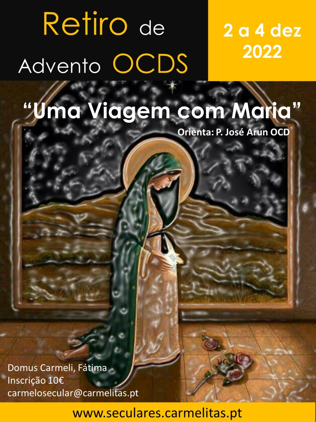 Para ajudar neste caminho de reflexão para a celebração do Natal, o Carmelo Secular programou um retiro de Advento, a decorrer de 2 a 4 de dezembro de 2022, na Domus Carmeli, em Fátima, com o tema “Uma viagem com Maria” e orientado pelo Pe José Arun, Ocd. Estando o retiro pensado e estruturado para os membros do Carmelo Secular, leigos e famílias, está também aberto a todos aqueles que desejem viver o tempo de Advento e preparar o Natal com um verdadeiro sentido cristão.