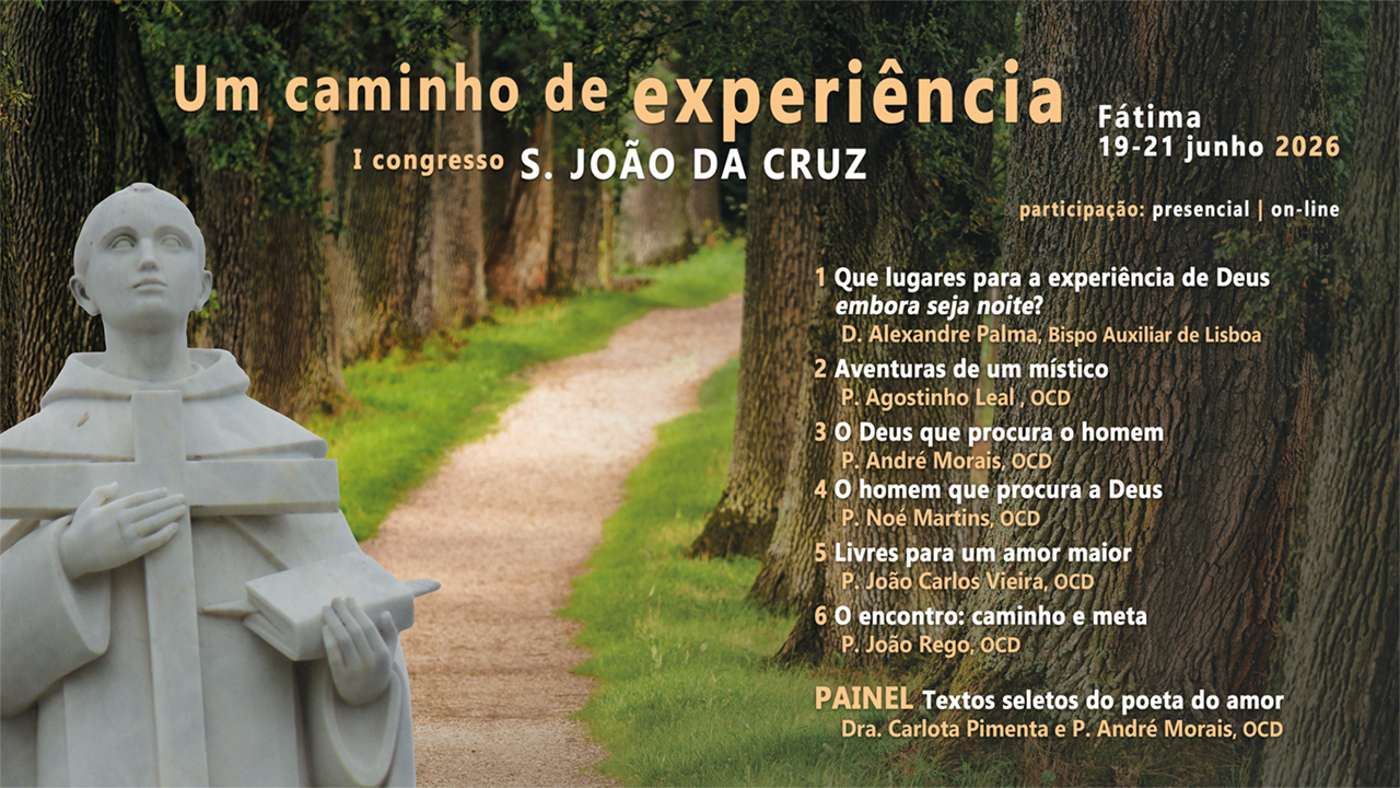 A Ordem dos Padres Carmelitas Descalços organizam, em Fátima (Domus Carmeli), o primeiro congresso sobre São João da Cruz, de 19 a 21 de junho de 2026, dedicado ao místico e doutor da Igreja do século XVI, no ano da celebração dos 300 anos da sua canonização e 100 anos da sua declaração como Doutor da Igreja. Sob o tema “Um caminho de experiência” o Congresso centra-se-á na busca e no encontro com Deus, o programa inclui várias conferências, momentos orantes e celebrações litúrgicas com a participação de oradores como D. Alexandre Palma e vários padres Carmelitas, abordando a experiência espiritual de São João da Cruz e a sua proposta de união de amor entre Criador e criatura.